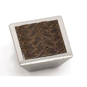 Product Description : From the ManufacturerThe Churchill collection can be country elegance or urban modern, this collection melds the warmth richness of genuine leather with hand finished castings. Product Description : 1.63" Square Knob- Satin Nickel-Brown
