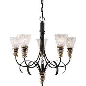 Product Description : From the ManufacturerThe word equinox derives from the Latin words aequus (equal) and nox (night). It seems a fitting description for this symmetrically balanced collection that is enhanced by a Black finish with Gold Highlights. Hand-spun weaved glass shines with spectacular brilliance amongst the Gold Leafed wire wrapped accents and the gentle curves of the arms. An understated detail is the crystal element highlighting the center of the fixture evoking the spirit of the Sun at the center of the Universe. Product Description : The dazzling design of the Equinox 5-light chandelier combines clear textured glass with black finish metalwork and gold finish highlights. From Landmark Lighting.